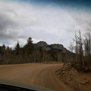 However, it was a really beautiful place (but no water or sewer hook-ups). There was no phone or internet service up there so I couldn't post anything until now. The last of the drive up was a winding dirt and gravel road. If there had been a place to turn around, I believe Gary would have! Here are some of the pics of the drive up to and of the campsite.